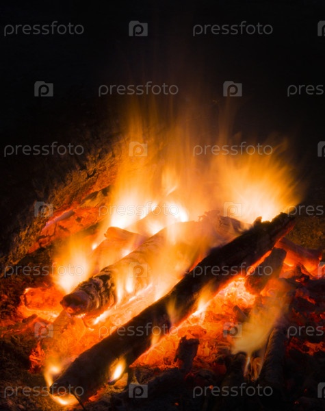 Пламя костра ночью