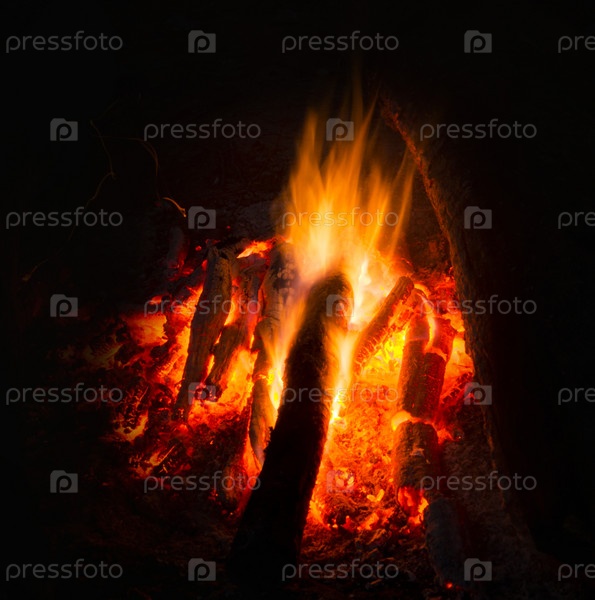 Пламя костра ночью