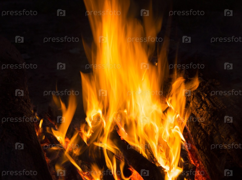 Пламя костра ночью