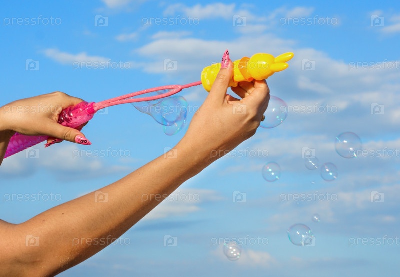 Мыльные пузыри на фоне голубого неба