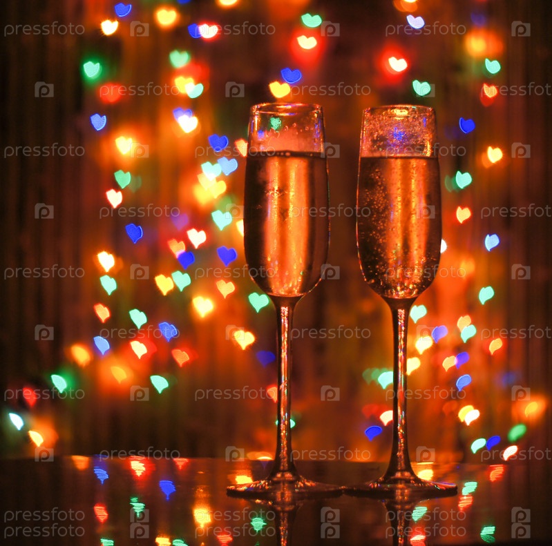 Бокалы шампанского на фоне боке