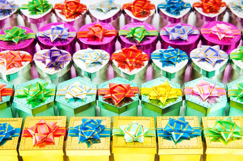 Красочные подарочные коробки крупным планом