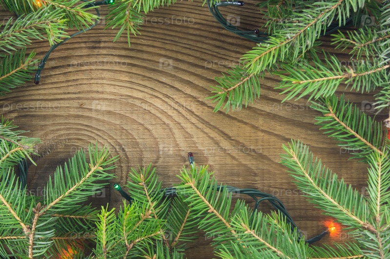 Рождественские огни на деревянных фоне