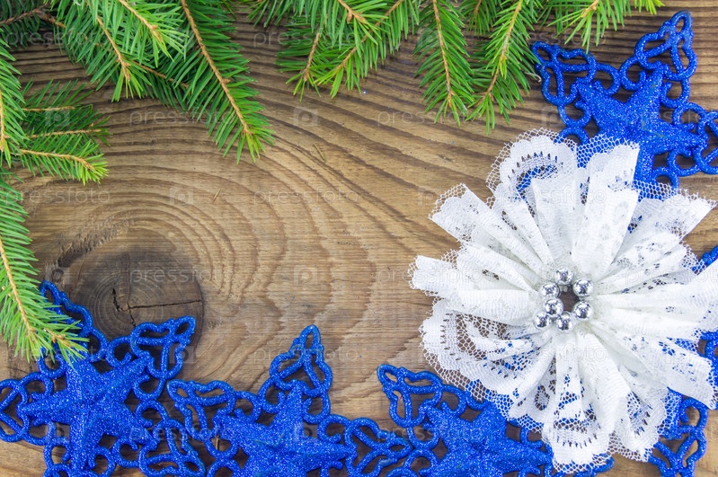 Старинные рождественские украшения дизайн границы над старой древесины фон