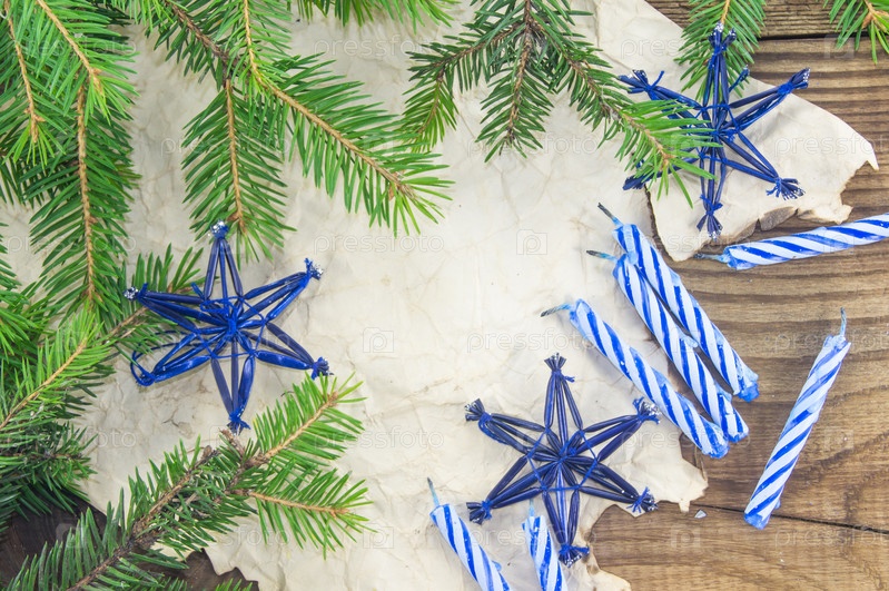 Рождественский Натюрморт с Свеча на деревянных фоне
