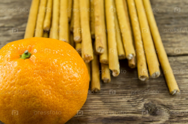 Хлебные палочки и мандарин