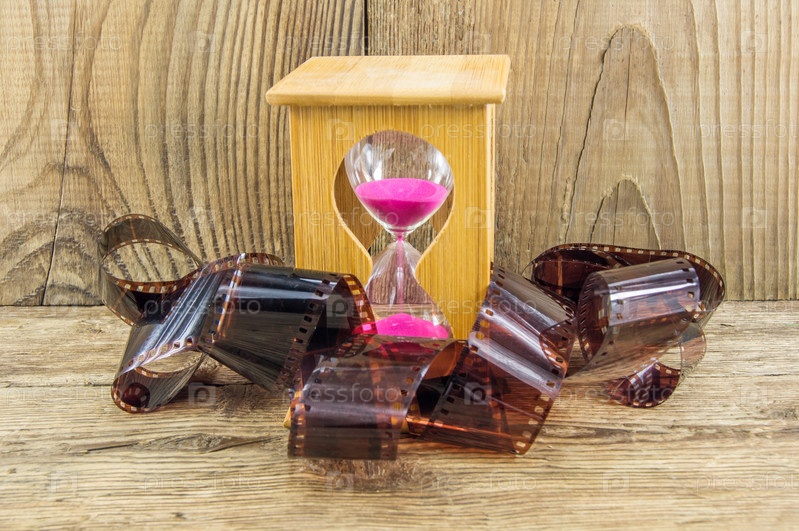 «Песочные часы» с пространством для текста на деревянных фоне