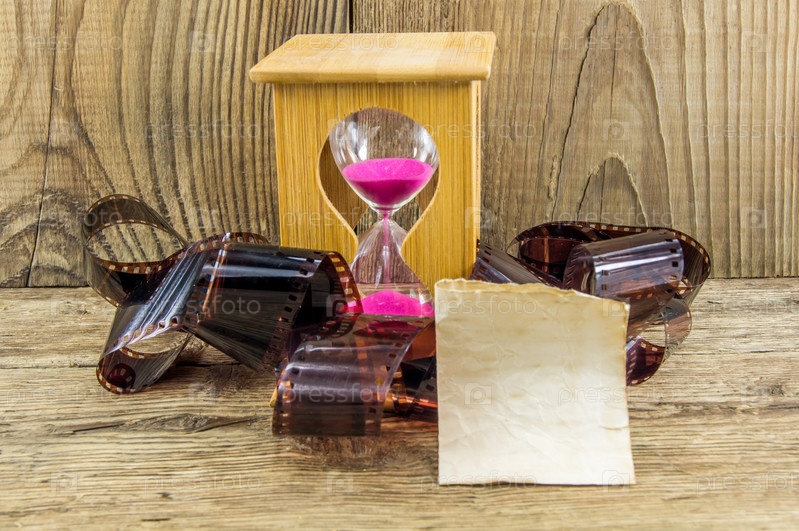 «Песочные часы» с пространством для текста на деревянных фоне