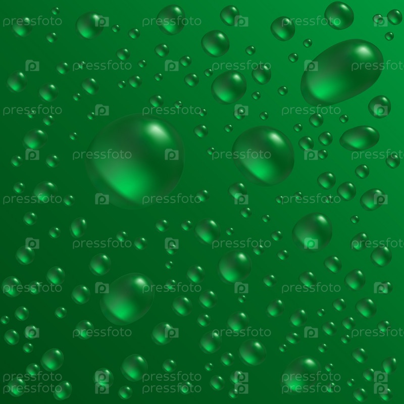 Капли воды на зеленой поверхности