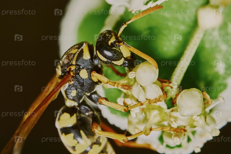 Оса на цветущем дереве летом в саду