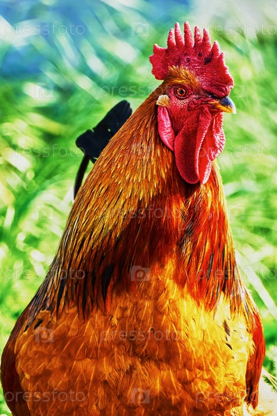 Замечательный петух в деревне на улице