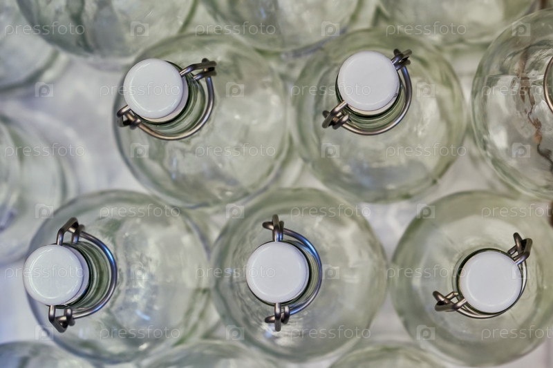Пустые герметичные бутылки с пробкой в магазине (вид сверху)