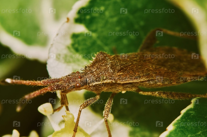 Коричневый клоп на зеленом листе