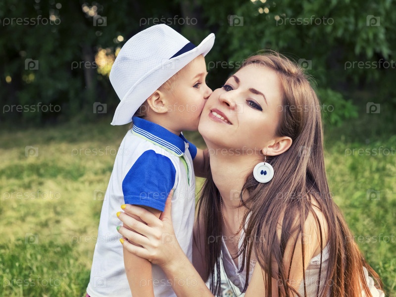 Мальчик целует мать в щеку