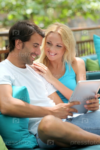 Пара с планшетным компьютером