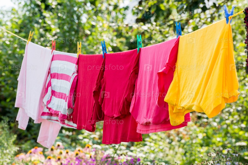 Белье сохнет на веревке