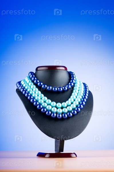 Жемчужное ожерелье на манекене на зеленом фоне