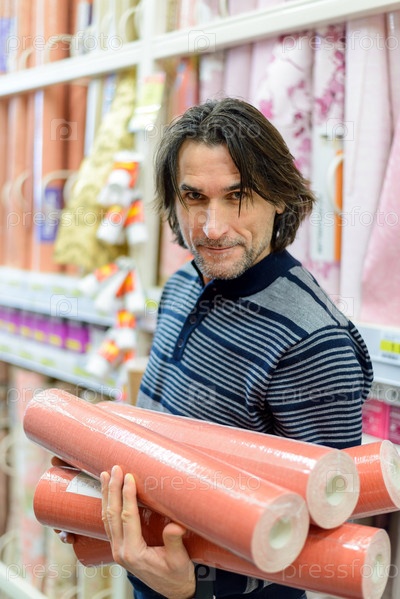 Мужчина выбирает обои