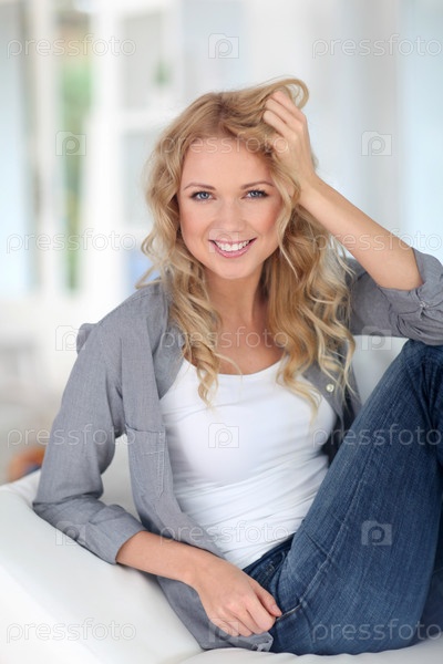 Красивая блондинка, отдыхает дома