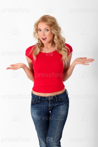 Красивая женщина в красной футболке