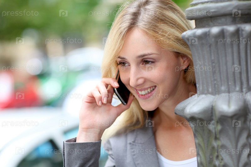 Девушка разговаривает по мобильном телефону на улице