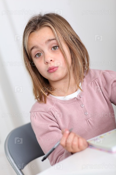 Девочка делает домашнее задание