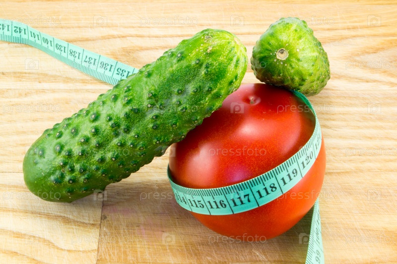 Огурец и помидор с измерительной лентой