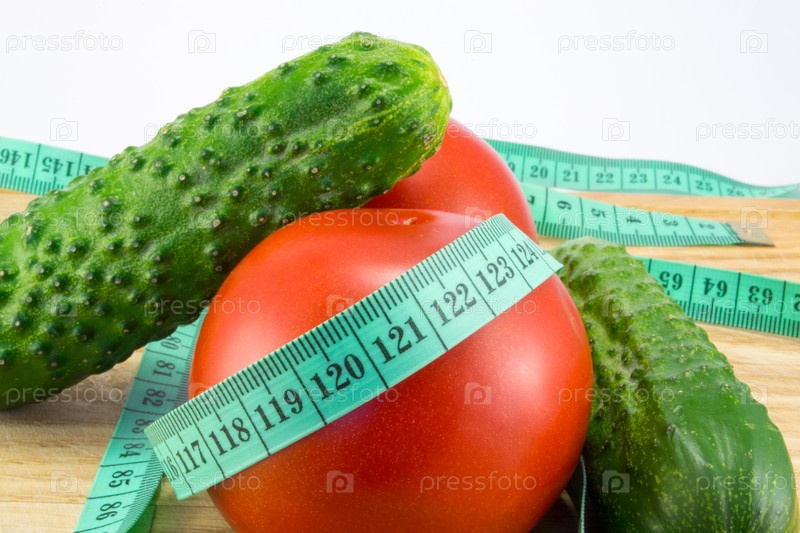 Огурец и помидор с измерительной лентой