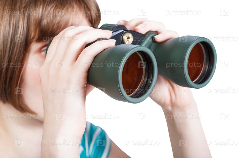 Девушка смотрит в бинокль