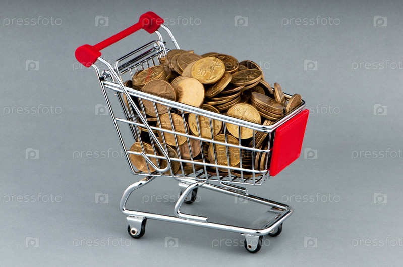 Тележка из супермаркета с монетами
