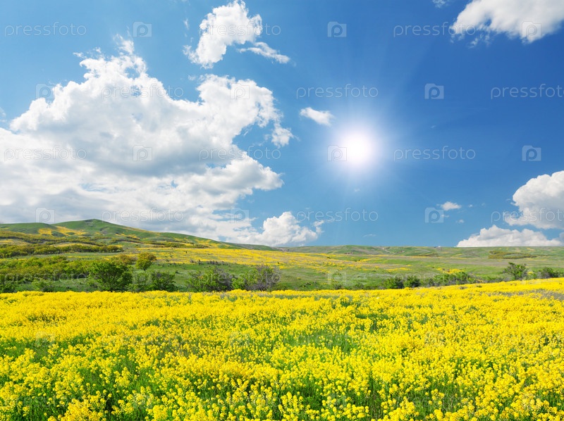 Зеленое поле с цветами п