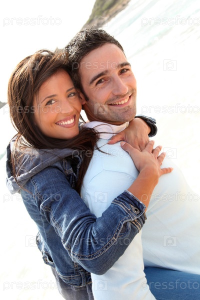 Человек несет подругу на пляже