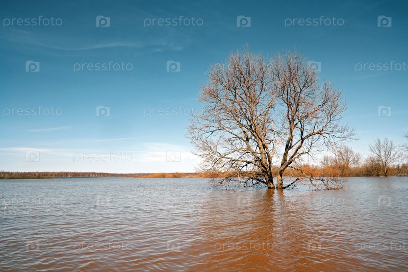 Большой дуб среди весеннего половодья