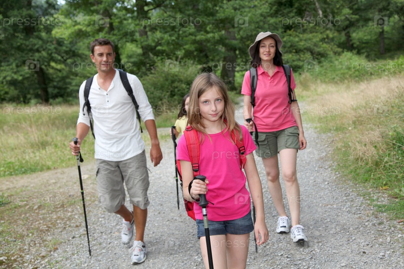 Семья на пешей прогулке