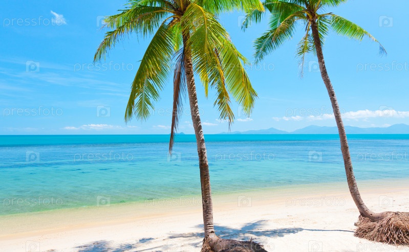 Тропический пляж с кокосовой пальмой