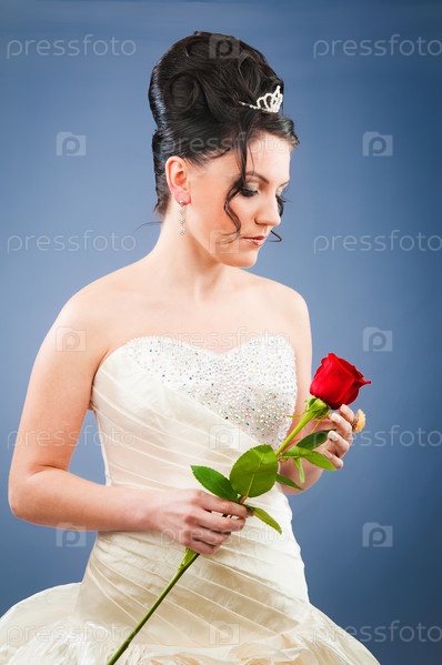 Невеста с розой на синем фоне
