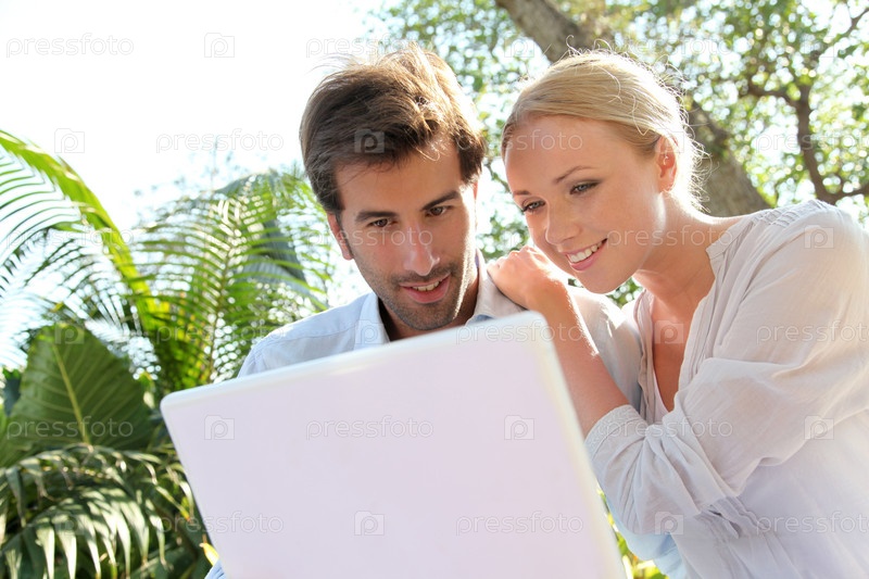 Молодая пара за ноутбуком