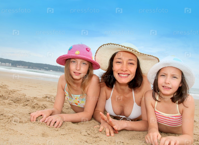 Мать и дочери на пляже