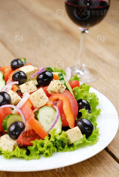 Овощной салат и бокал красного вина