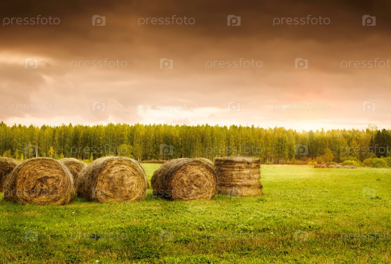 Тюки сена после сбора урожая
