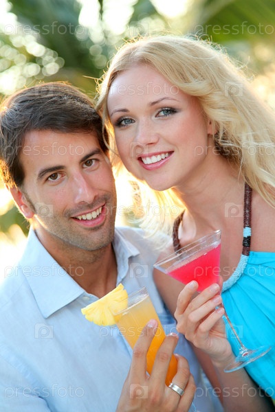 Супружеская пара с коктейлем на роскошном курорте
