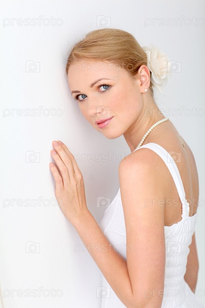 Портрет красивой невесты на белом фоне