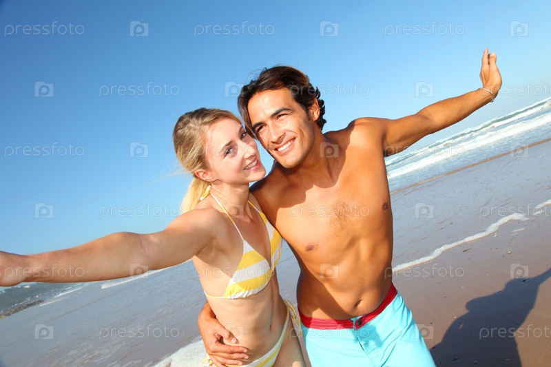 Молодая пара развлечения на пляже