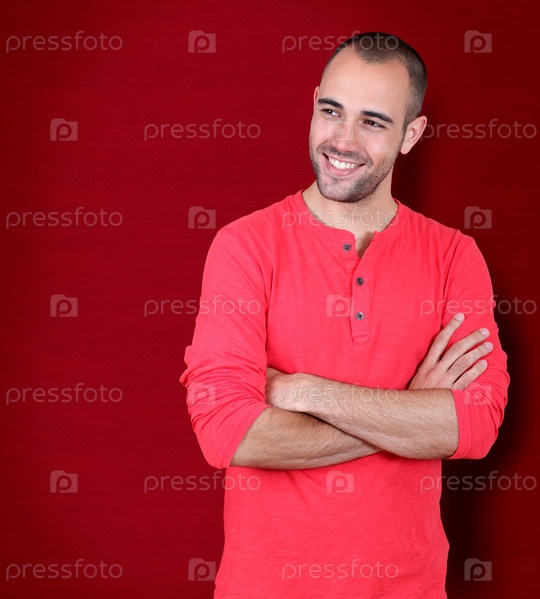 Красивый мужчина на красном фоне