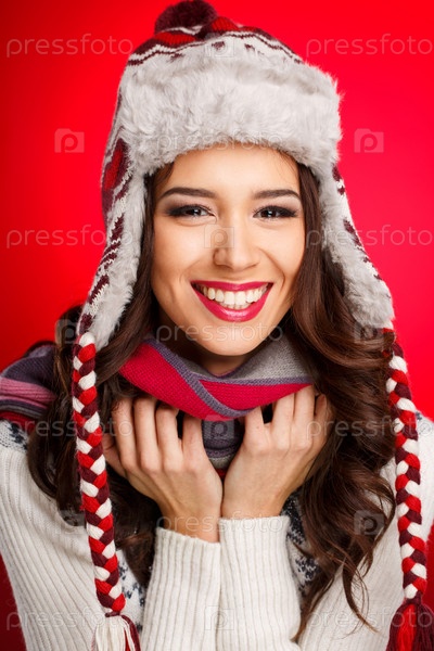 Брюнетка в теплой шапке