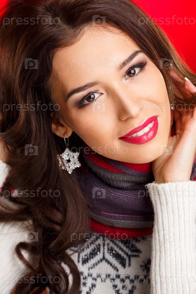 Брюнетка в теплом свитере и шарфе