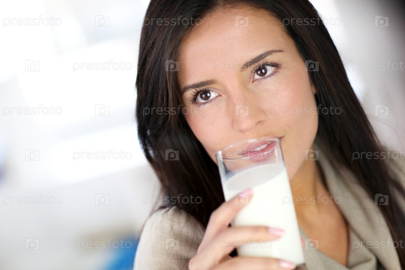 Молодая женщина пьет свежее молоко