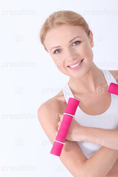 Женщина с фитнес-снаряжением