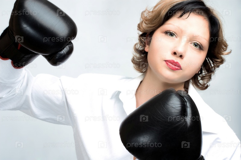 Молодой злой женщиной в боксерские перчатки