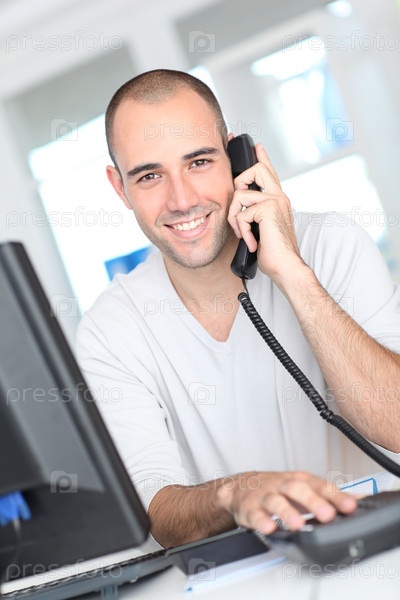 Улыбающийся человек отвечает на телефонный звонок